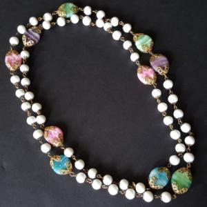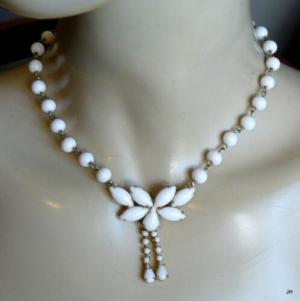 VINTAGE 1950'S FOUR STRAND MILK GLASS NECKLACE     Completed    $10.13