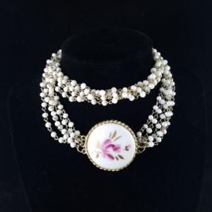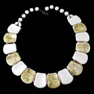VINTAGE 1950'S GOLD MILK GLASS CHOKER NECKLACE     Completed    $10.14