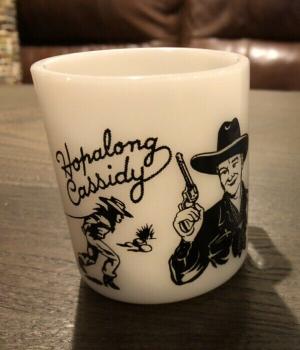 ANCHOR HOCKING WHITE MILK GLASS "BAD GUY" MUG     Completed    $10.05
