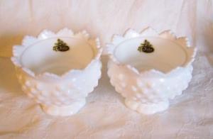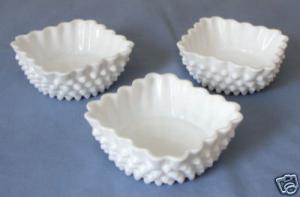 3 SQUARE FENTON HOBNAIL MILK GLASS DISHES     Completed    $10