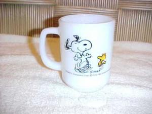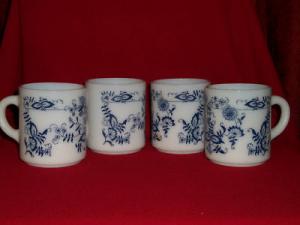 Set of 4 White Milk Glass Coffee Cups w/Blue print     Completed    $10.01