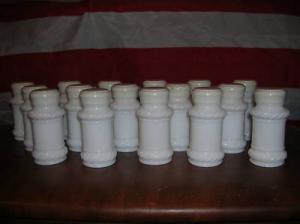 WHITE MILK GLASS SPICE JARS SHAKERS~SET OF 16~     Completed    $10