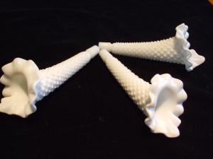 Three FENTON MILK GLASS Hobnail 5" EPERGNE HORNS     Completed    $10.01