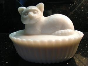 VINTAGE CAT MILK GLASS COVERED DISH BY WESTMORELAND     Completed    $10.01