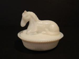 White Milk Glass Horse on Nest Covered Dish Vintage     Completed    $10.03