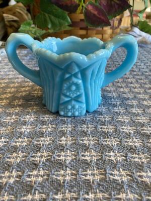 fostoria american sugar Blue Milk Glass Sugar Bowl     Completed    $10.01