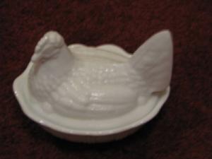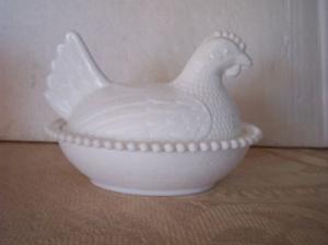 FENTON WHITE MILK GLASS HEN     Completed    $10
