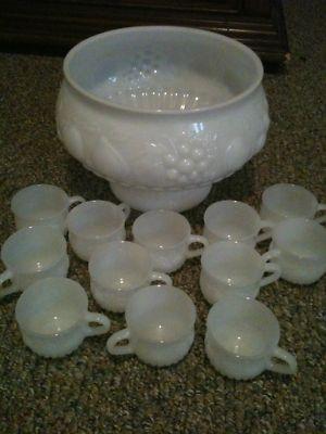 White Milkglass Punch Bowl with 12 cups     Completed    $10