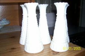 5 Vintage Hoosier Glass Milk glass vases NICE!     Completed    $10