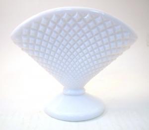 Milk Glass Diamond Quilted Footed Fan Vase     Completed    $10