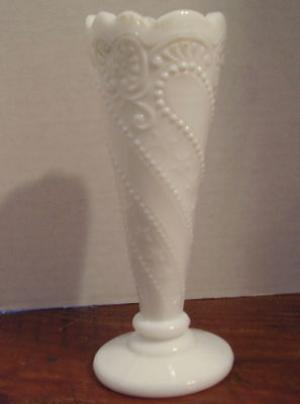 Antique Beads Stars & Scroll Milk Glass Vase     Completed    $10