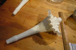 FENTON EPERGNE HORN SILVER CREST MILK GLASS     Completed    $10