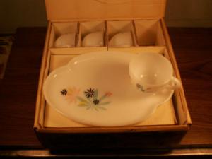 MILK GLASS PATIO SNACK SET FEDERAL GLASS CO.     Completed    $10