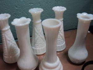 VTG LOT X 6 MILK GLASS VASES VGC     Completed    $10