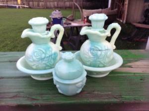 1970s green milk glass set . Wonderful Look ,     Completed    $10