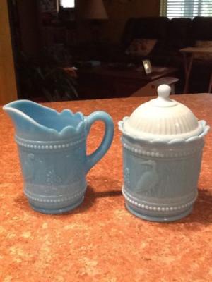 Blue Milk Glass Cream And Sugar     Completed    $10