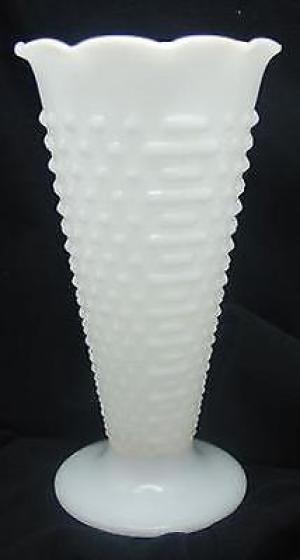 9.5" VINTAGE HOBNAIL MILK GLASS VASE     Completed    $10