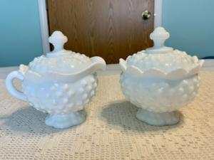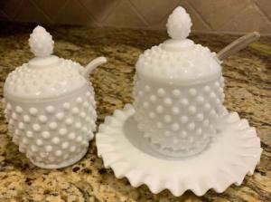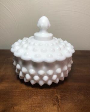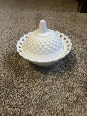 Vintage Fenton Hobnail Milk Glass Covered Dish     Completed    $10