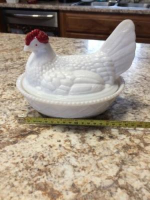 BIRD ON NEST CAD WHITE MILK GLASS NO MARKINGS     Completed    $10