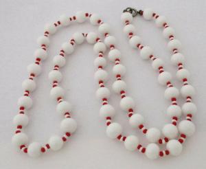 Vintage Milk Glass/Red Seed Bead Necklace     Completed    $10
