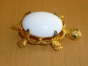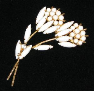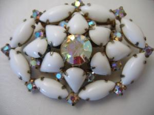 Vintage Milk Glass Rhinestone Flower Brooch     Completed    $9.99