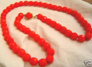 VINTAGE Opaque RED FACETED Milk GLASS NECKLACE     Completed    $9.99