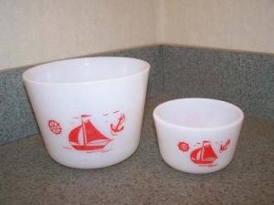 Vintage McKee Milk Glass Bowls Red Sailboats     Completed    $9.99