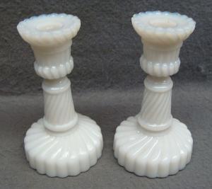 Pair Milk Glass Miniature Dolls Swirl Candlestick     Completed    $9.99
