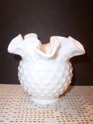 FENTON MILK GLASS HOBNAIL FLUTED VASE - LQQK!     Completed    $9.99