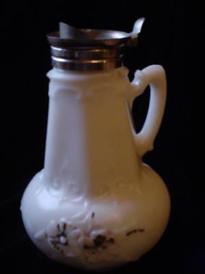 ANTIQUE FLOWERED MOLDED MILK GLASS SYRUP PITCHER     Completed    $9.99