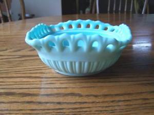 FOSTORIA GLASS RANDOLPH BLUE MILK GLASS NAPPY     Completed    $9.99