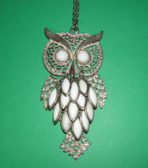 Vintage White Milk Glass Owl Pendant Necklace     Completed    $9.99