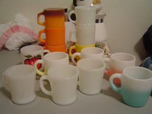 Set of 4 Coffee Mugs Antique White Milk Glass     Completed    $9.99