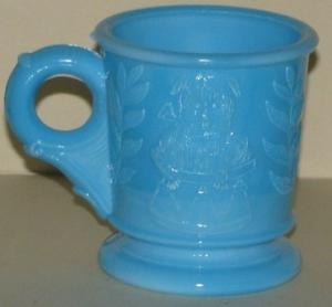 OLD? EAPG Childs Blue Milk Glass Mug Cat & Dog     Completed    $9.99