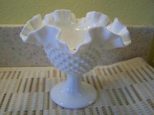 FENTON MILK GLASS HOBNAIL CANDLE HOLDER BOWL     Completed    $9.99