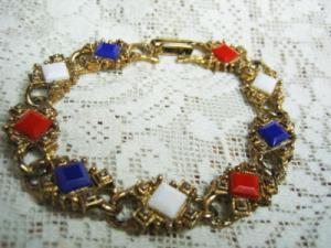 VINTAGE RED WHITE BLUE MILK GLASS BRACELET MUST C     Completed    $9.99
