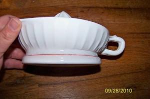 Vintage White Milk Glass Juicer W/Red Stripe     Completed    $9.99
