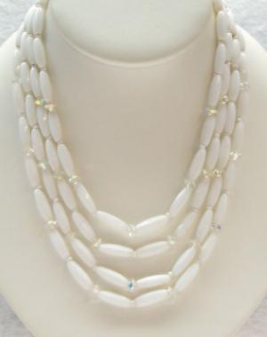 Vintage Long White Milk Glass Bead Necklace     Completed    $9.99