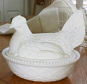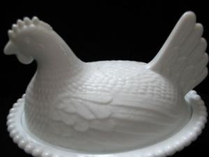 Milk-Glass HEN ON NEST - c. 1950's - Large Size     Completed    $9.99