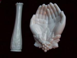 WESTMORELAND MILK GLASS HANDS AND VASE 2 PC LOT     Completed    $9.99