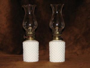 PAIR VINTAGE HOBNAIL MILK GLASS OIL LAMPS     Completed    $9.99
