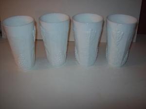 *4 TALL MILK GLASS GRAPE LEAF WATER GLASSES**     Completed    $9.99
