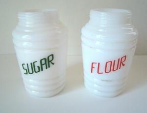 2 Hazel Atlas Milk Glass Shakers Sugar & Flour     Completed    $9.99