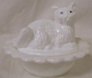 Mosser Glass Milk w/ Blue Eyes Cat Salt Cellar     Completed    $9.99