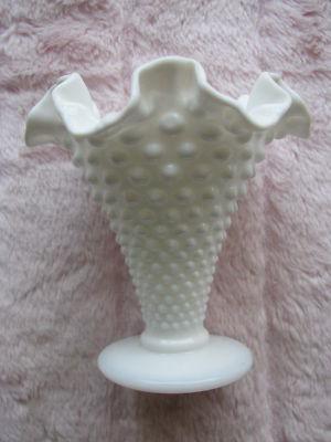 HOBNAIL PINK MILK GLASS FAN VASE     Completed    $9.99