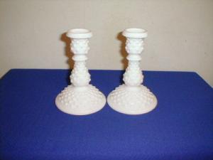 Fenton Hobnail Milk Glass Candle Holders 6" tall     Completed    $9.99