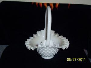 "FENTON" WHITE MILK GLASS HOBNAIL BASKET     Completed    $9.99