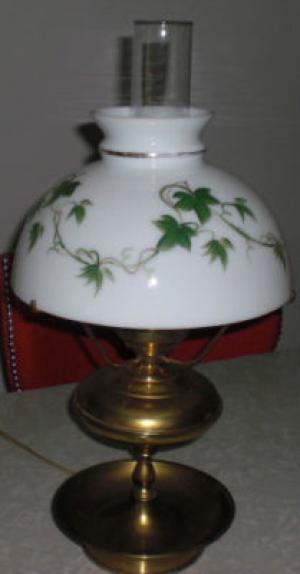 Vtg Brass Lamp Milk Glass Vine Shade Table Desk     Completed    $9.99