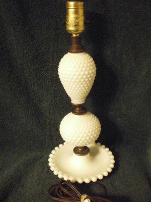Vtg Hurricane Hobnail Milk Glass Brass Lamp     Completed    $9.99