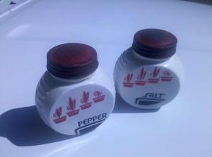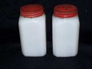 vintage MILK GLASS art deco SALT & PEPPER SHAKERS     Completed    $9.99